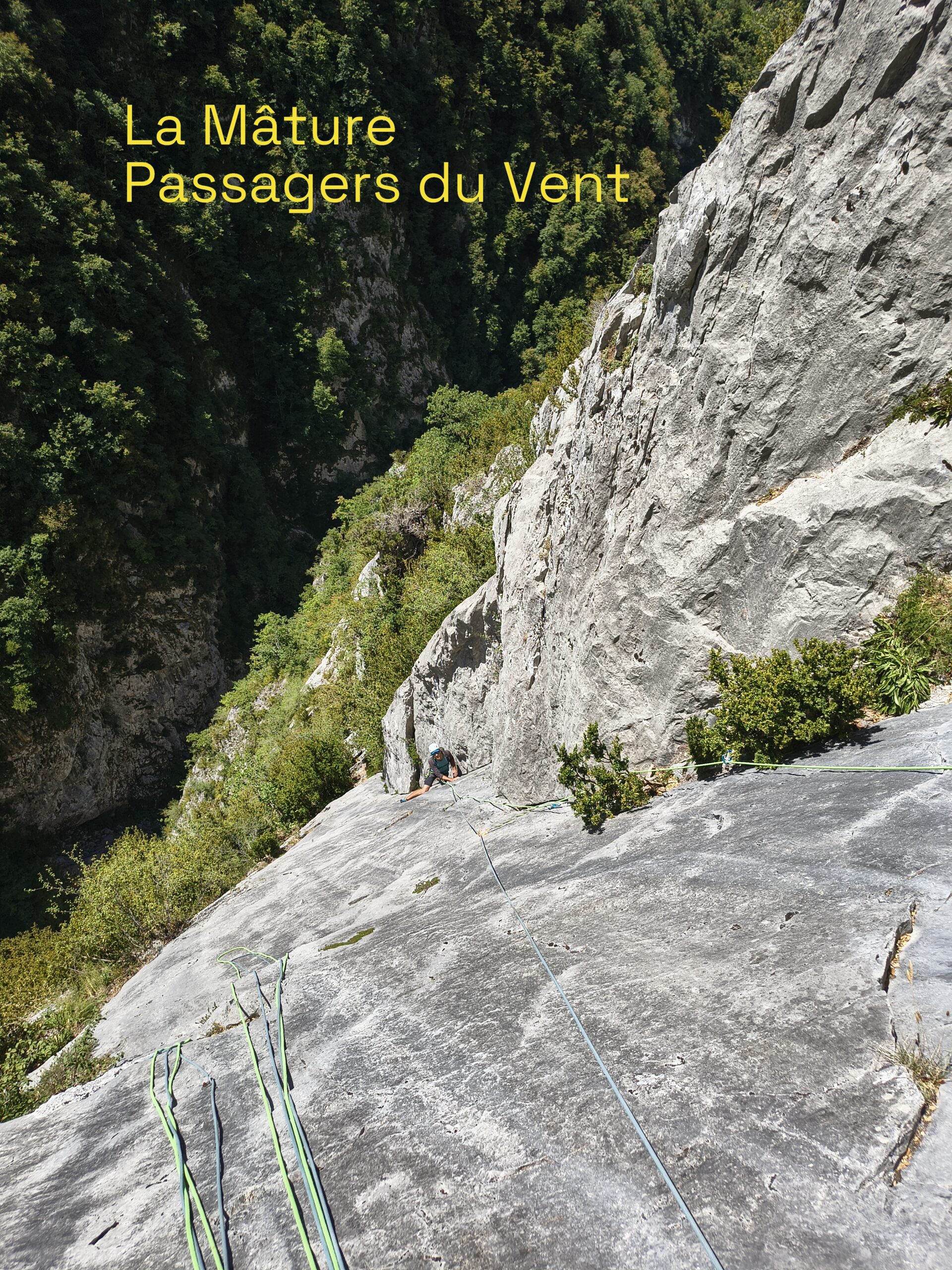 On déroule sans pression les longueurs une à une, c’est très agréable la pose de coinceurs dans un caillou de cette qualité. On en vient à se faire la réflexion que les grimpeurs du Verdon doivent se dire dans leurs gorges « whouaaa le caillou est magnifique on dirait La Mâture ! » 😅